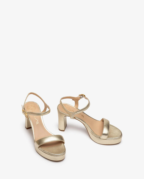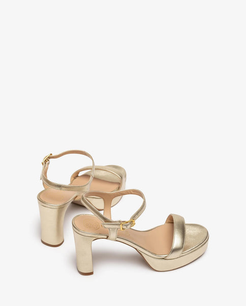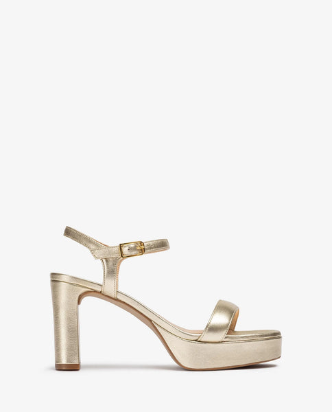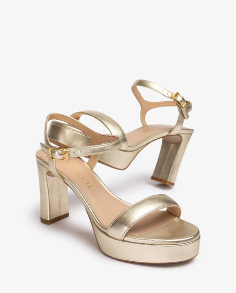 Sandalia de punta redonda fabricada en piel metalizada. Ajustable en el tobillo con hebilla metálica. Plataforma de 3cm y tacón de 8cm forrados en piel. Elegante suela de goma antideslizante. Imprescindible para tener un estilo muy personal.