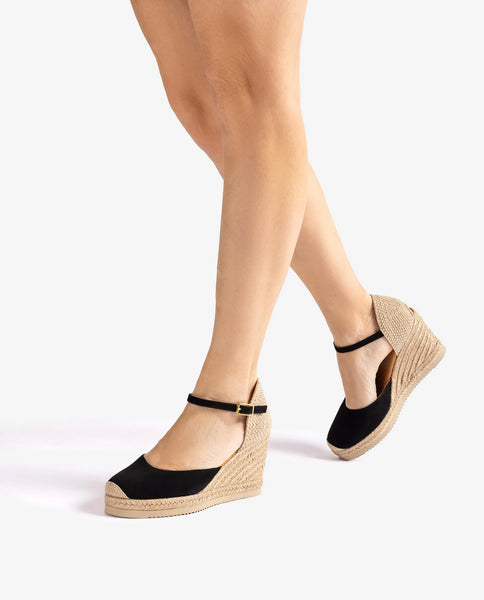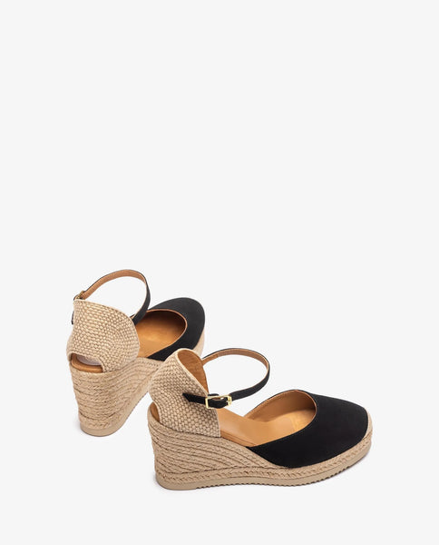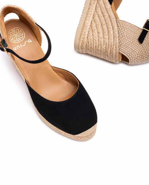 Alpargata de punta redonda fabricada en ante. Talonera de rafia y ajustable con hebilla metálica. Plataforma de 2cm y cuña de 8,5cm forradas en yute. Suela de EVA más ligera y flexible que nunca gracias a la tecnología Superlight de Unisa. El diseño y la comodidad de estas alpargatas te sorprenderá.