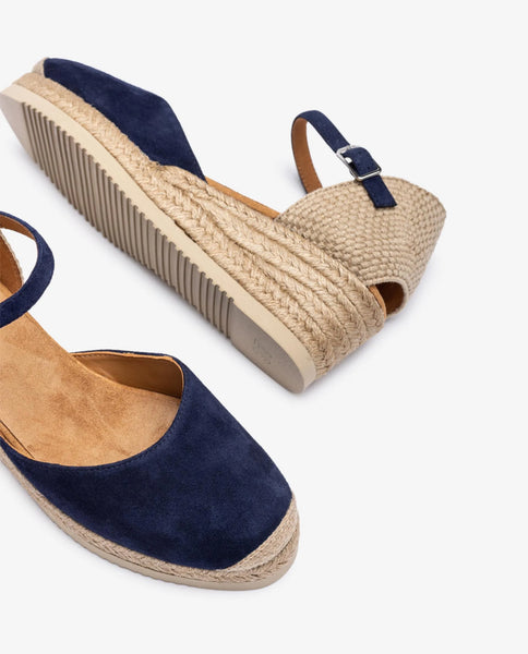 Alpargata de punta redonda fabricada en ante. Talonera de rafia y ajustable con hebilla metálica. Plataforma de 1cm y cuña de 3cm forradas en yute. Suela de EVA más ligera y flexible que nunca gracias a la tecnología Superlight de Unisa. ¡Siente la comodidad al ponerte estas alpargatas!