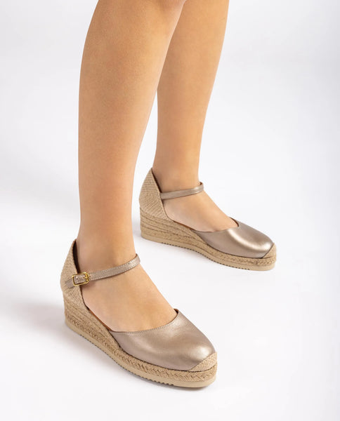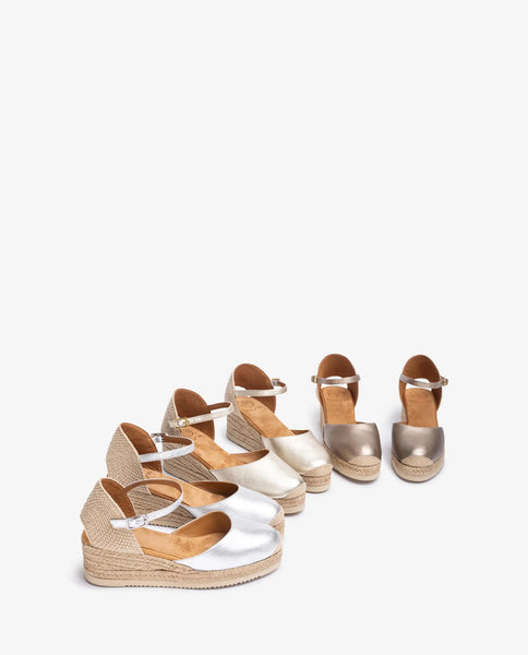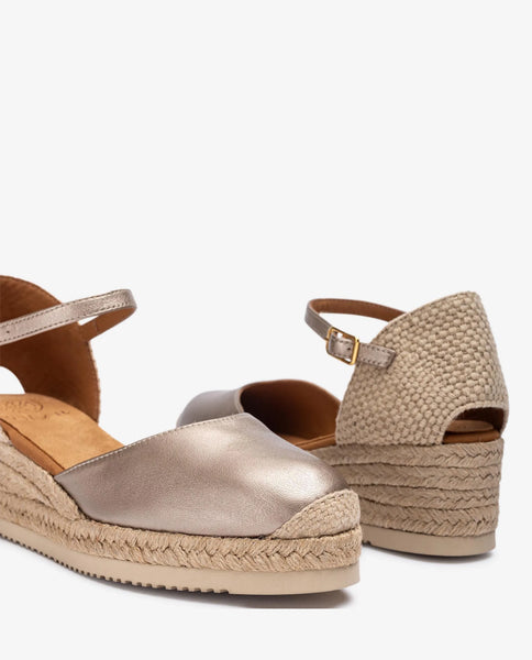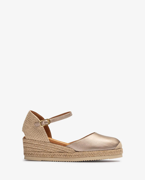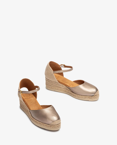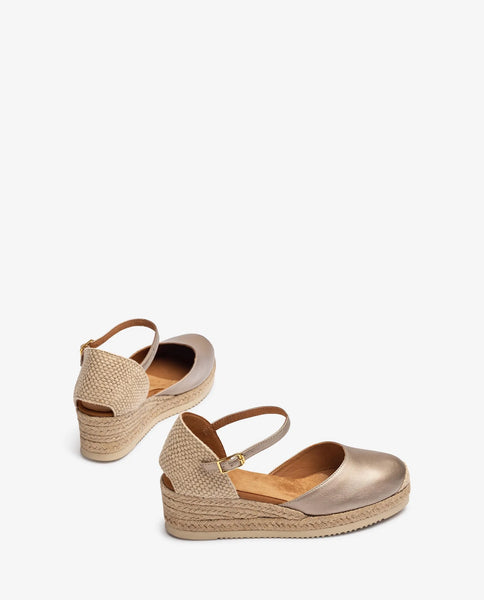 Alpargata de punta redonda fabricada en ante. Talonera de rafia y ajustable con hebilla metálica. Plataforma de 1cm y cuña de 3cm forradas en yute. Suela de EVA más ligera y flexible que nunca gracias a la tecnología Superlight de Unisa. ¡Siente la comodidad al ponerte estas alpargatas!