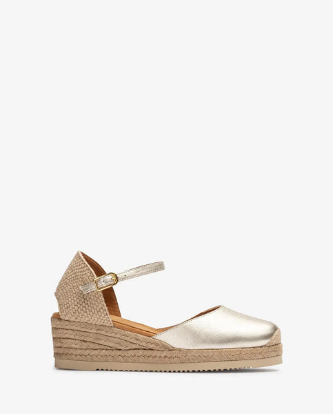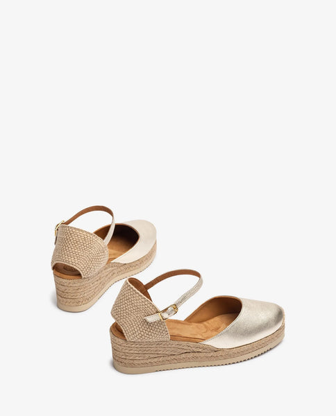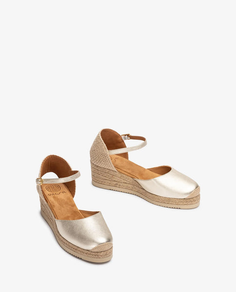 Alpargata de punta redonda fabricada en ante. Talonera de rafia y ajustable con hebilla metálica. Plataforma de 1cm y cuña de 3cm forradas en yute. Suela de EVA más ligera y flexible que nunca gracias a la tecnología Superlight de Unisa. ¡Siente la comodidad al ponerte estas alpargatas!