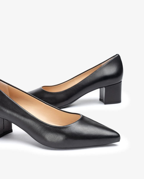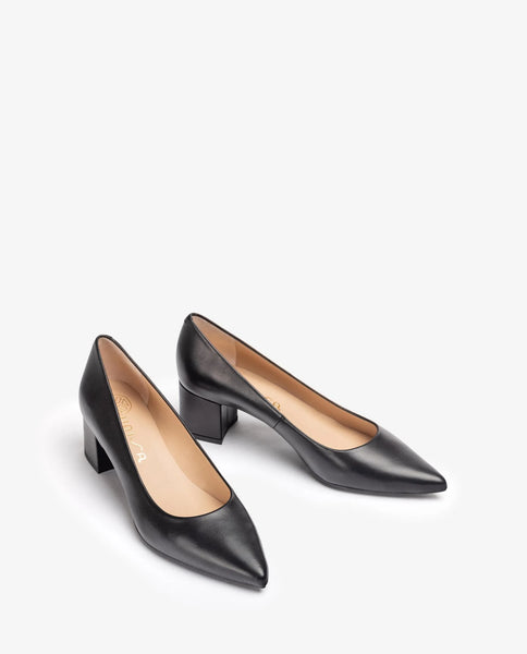 Salón de punta fina fabricado en piel. Cómodo tacón ancho de 5cm de altura forrado en piel al tono. Suela de goma ligera, flexible y antideslizante. ¿A qué esperas para conseguir tu modelo JASUL de Unisa?